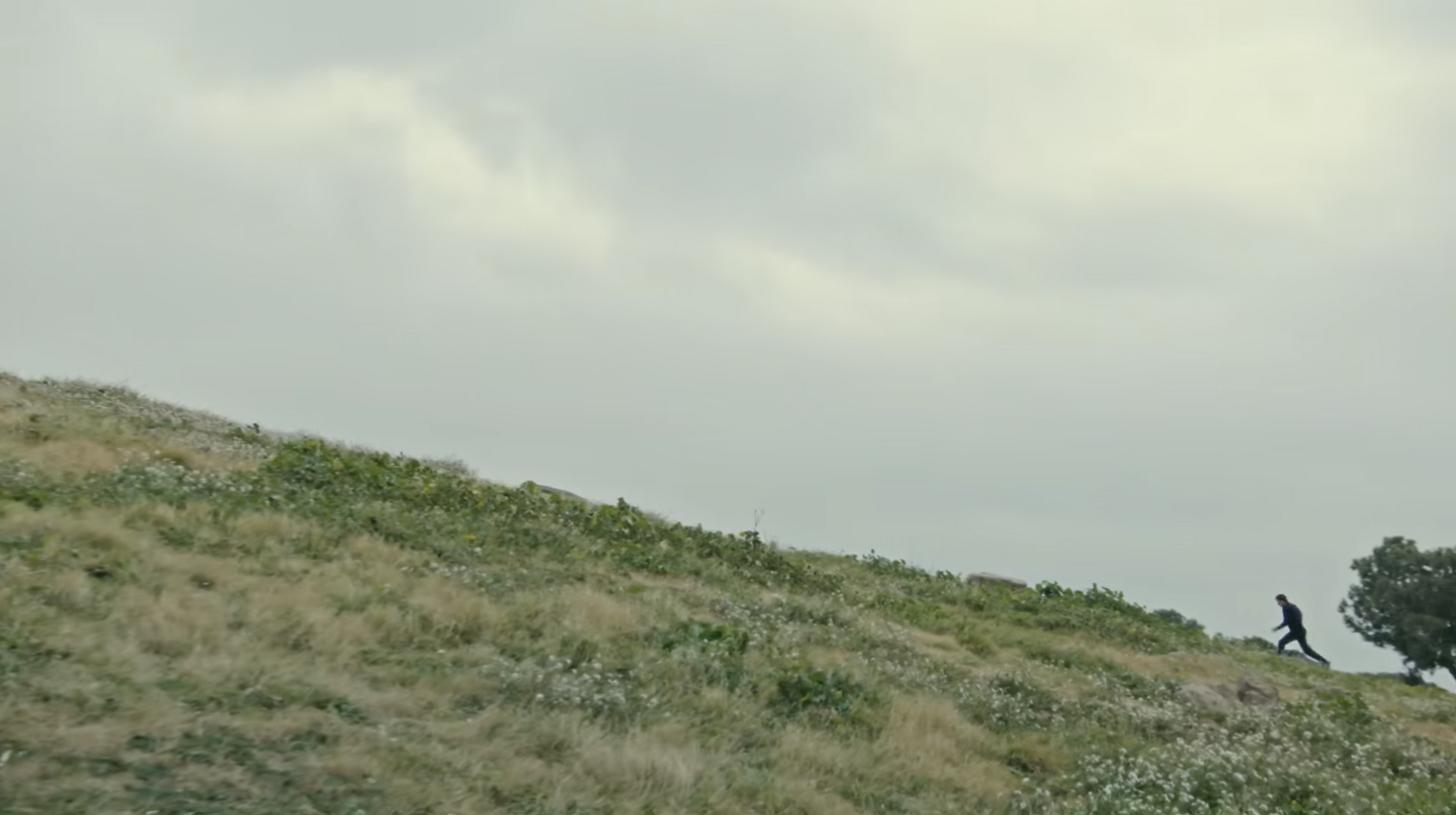 Mais chez Hopper il y a aussi l’importance des diagonales, qui symbolisent pour ses personnages la frontière entre espace intérieur et extérieur. Une diagonale lourde de sens dans cette prise de vue fixe qui voit Emma gravir une montagne, et Holland une colline, avec une symétrie parfaite qui coupe le plan en deux, renforçant cette tension identitaire entre son soi et son environnement direct : ‘Why should I be framed’ pour Watson, ‘What if there is another way’ pour Holland qui est un questionnement fondateur. Prada rappelle et appuie que Hommes et Femmes, dans notre société actuelle, font face aux mêmes questionnements identitaires. La perdition n’est pas une affaire de sexe. Le sexe n’est pas inné. Finalement pas plus qu’il n’est acquis. La rapidité avec laquelle les mutations opèrent remettent en question l’identité de n’importe quel sexe. Les deux égéries ne sont pas enfermées dans leur cliché sexué.