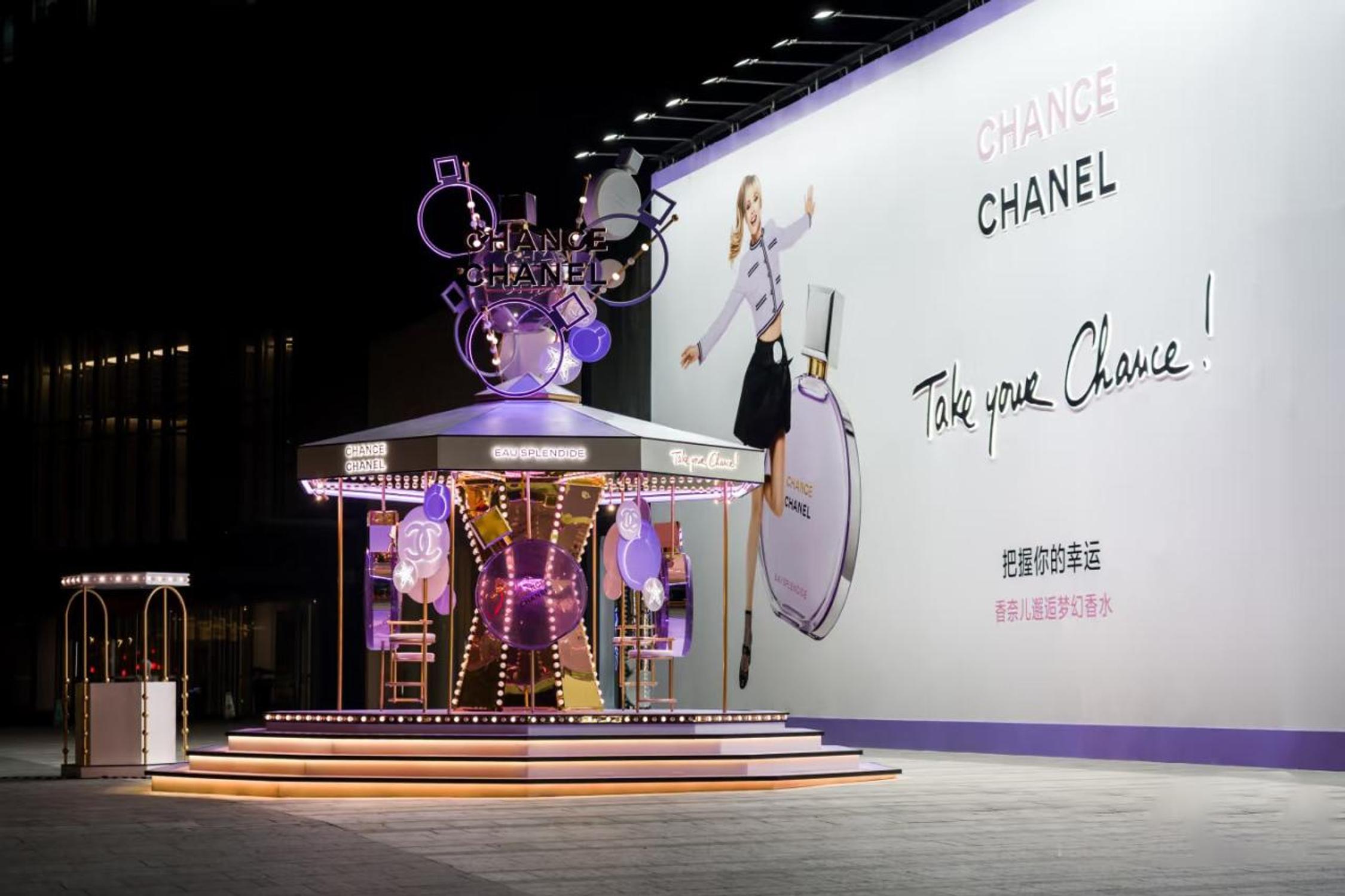 Chanel a orchestré "The CHANEL Chance Street Pop-up" au Réel Mall, West Nanjing Road, du 17 janvier au 1er février 2026, autour du lancement de Chance Eau Splendide. Le dispositif en deux espaces connectés associe une zone indoor de découverte parfum à une installation carrousel en extérieur face au trafic piéton, transformant une emprise mall en moment de parfumerie urbaine à haute visibilité.