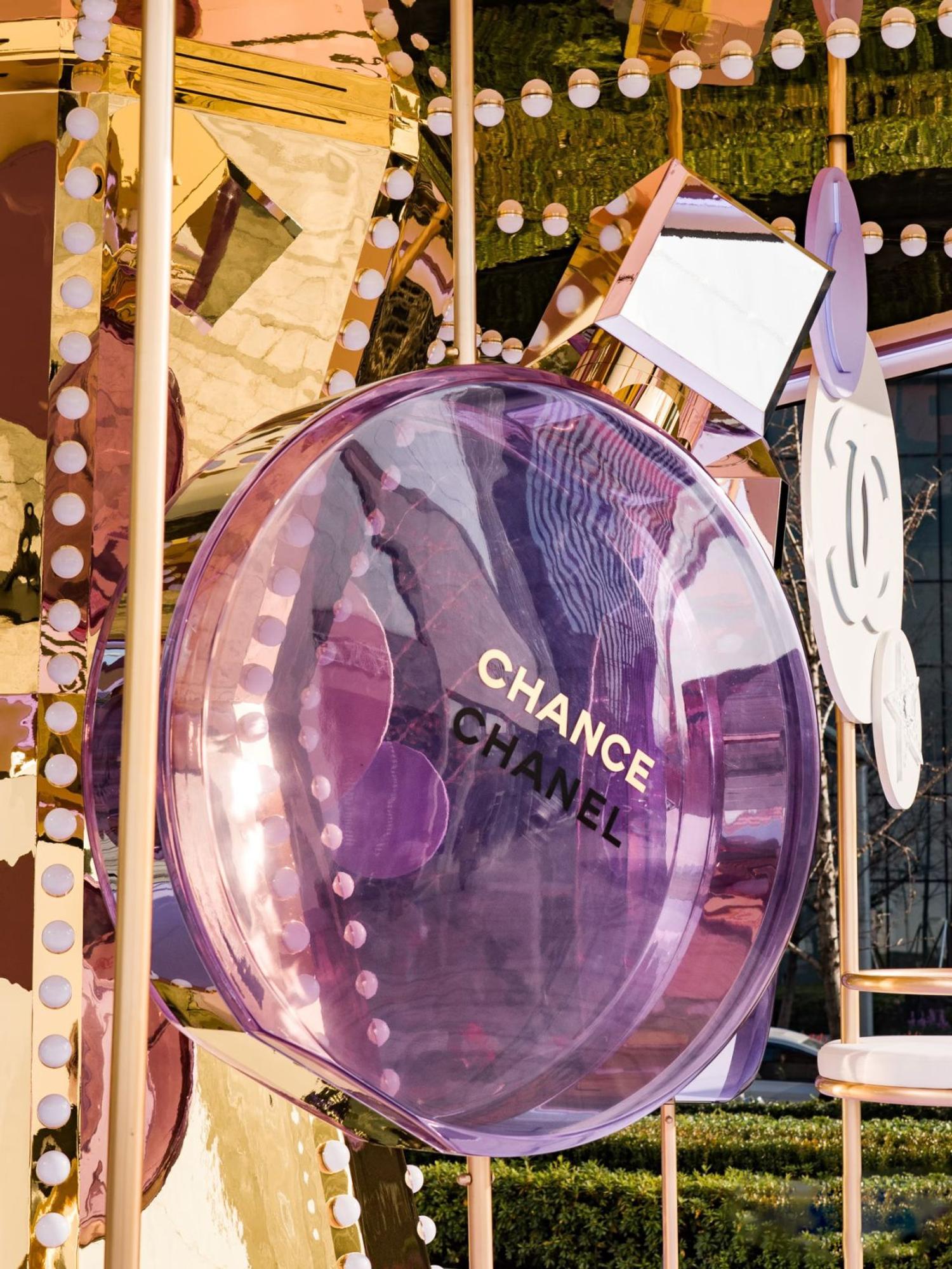 À l’intérieur, les visiteurs découvrent Chance Eau Splendide sur mouillettes, explorent la gamme Chance complète, et testent les soins complémentaires (gel nettoyant, lait corps, huile), construisant un parcours d’éducation olfactive multi-catégories plutôt qu’un simple essai produit.