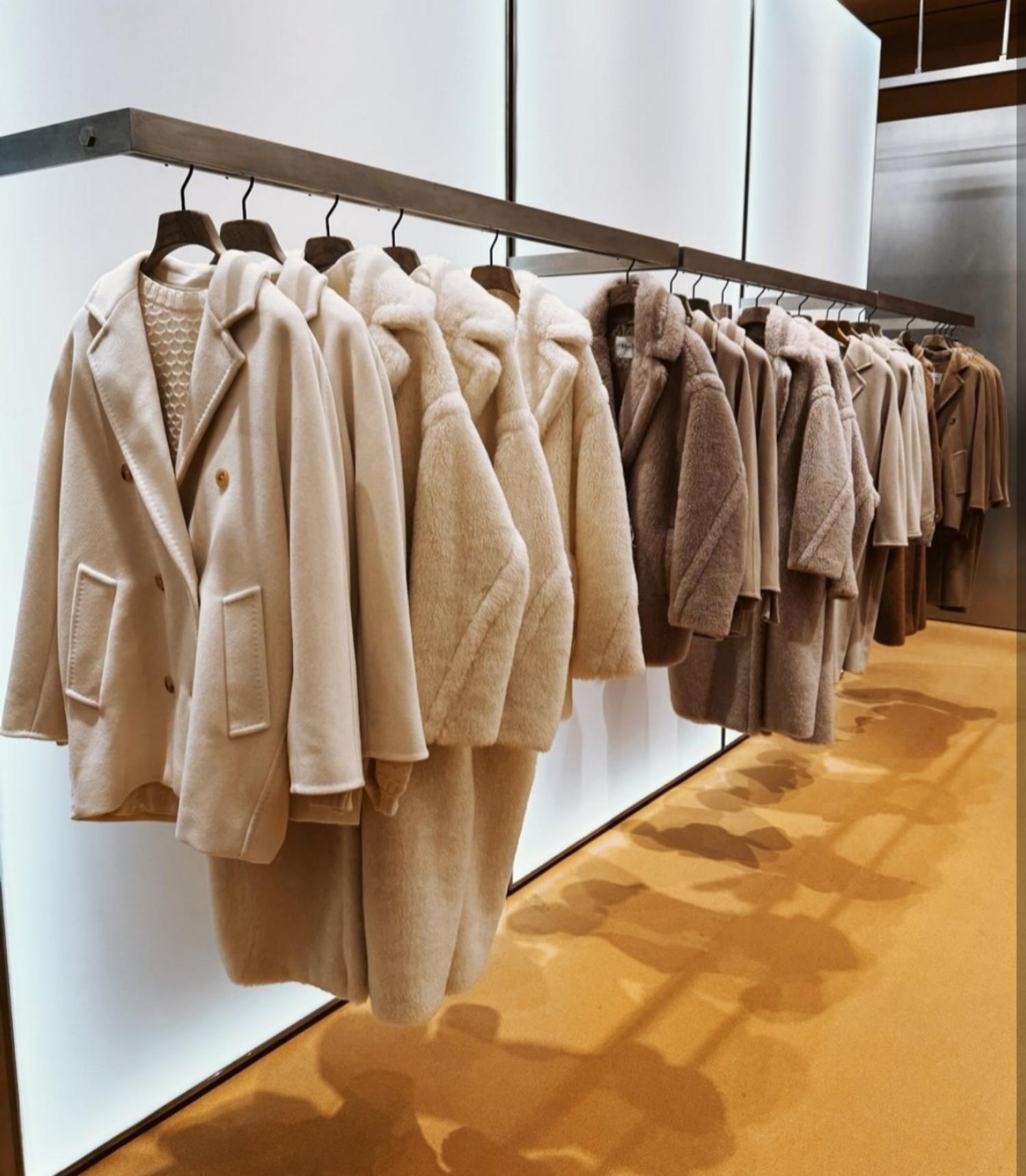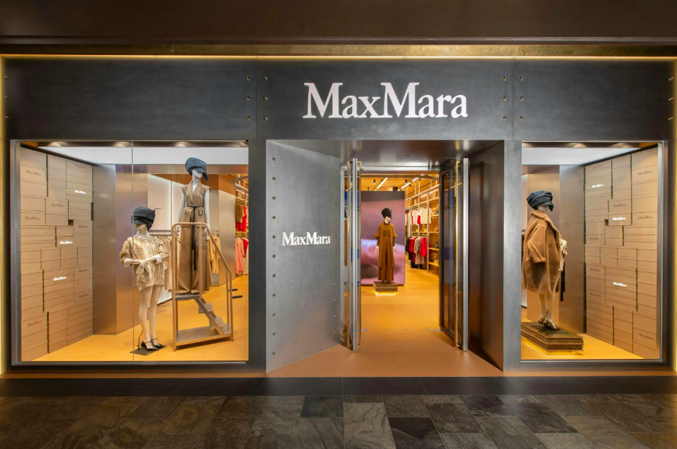 Max Mara a présenté C R E A T I V A, un pop-up immersif de 190 m² au Marina Bay Sands, à Singapour. Le concept transpose l’usine Manifatture di San Maurizio de la marque (Reggio Emilia) en un décor retail industriel-chic : caisses de transport réemployées, liège, contreplaqué et rails en laiton façon « convoyeur » dans une palette camel, mettant en lumière les icônes (101801, Teddy Bear) aux côtés d’une capsule rouge Nouvel An chinois.