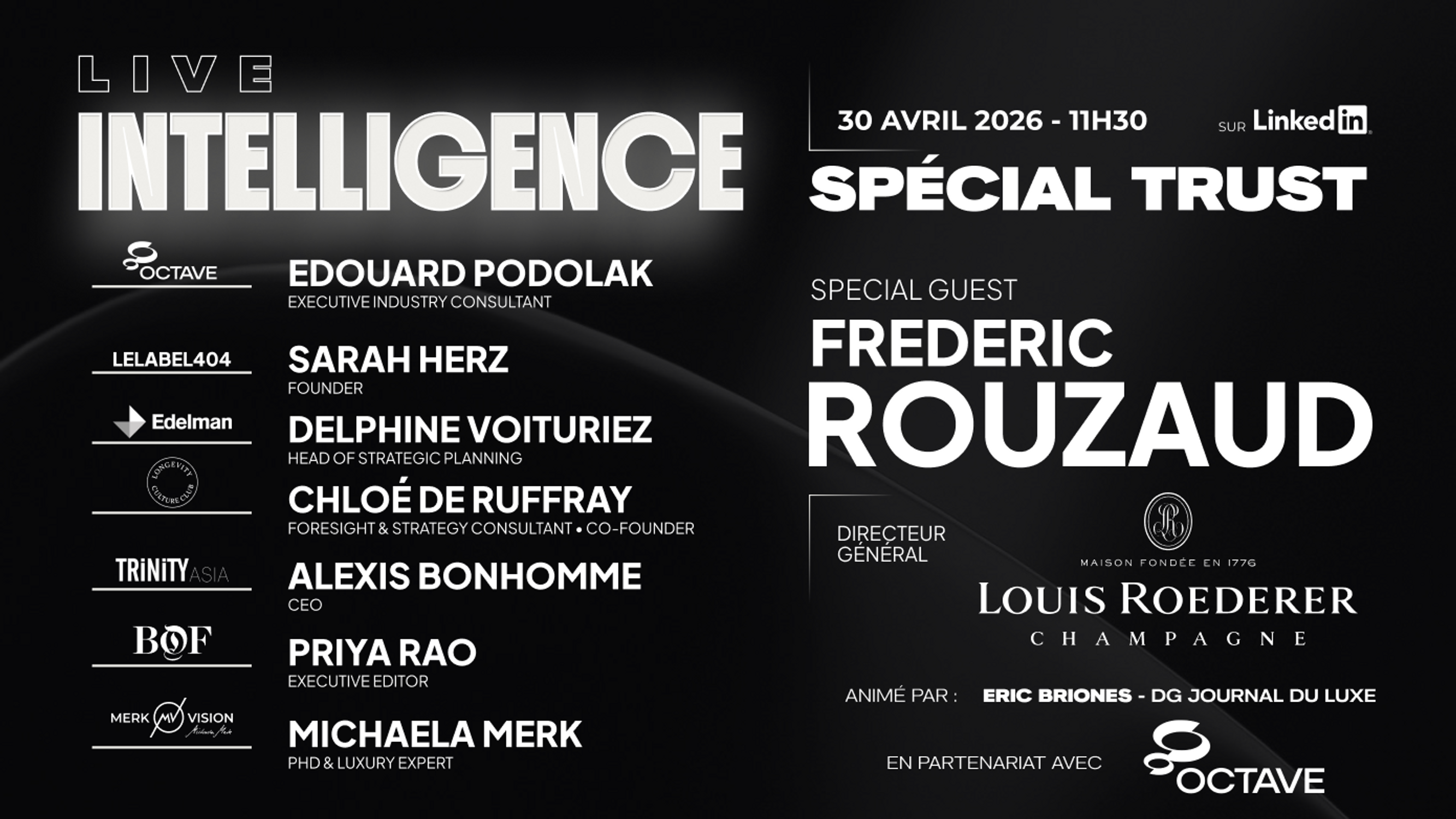 Chaque mois, le Journal du Luxe décrypte en live l’actualité du secteur aux côtés d’experts. Pour ce nouveau numéro, le Journal du Luxe, en partenariat avec Octave, donne rendez-vous à la communauté du luxe pour un nouvel épisode des Live Intelligence, le 30 avril à 11h30 sur LinkedIn.