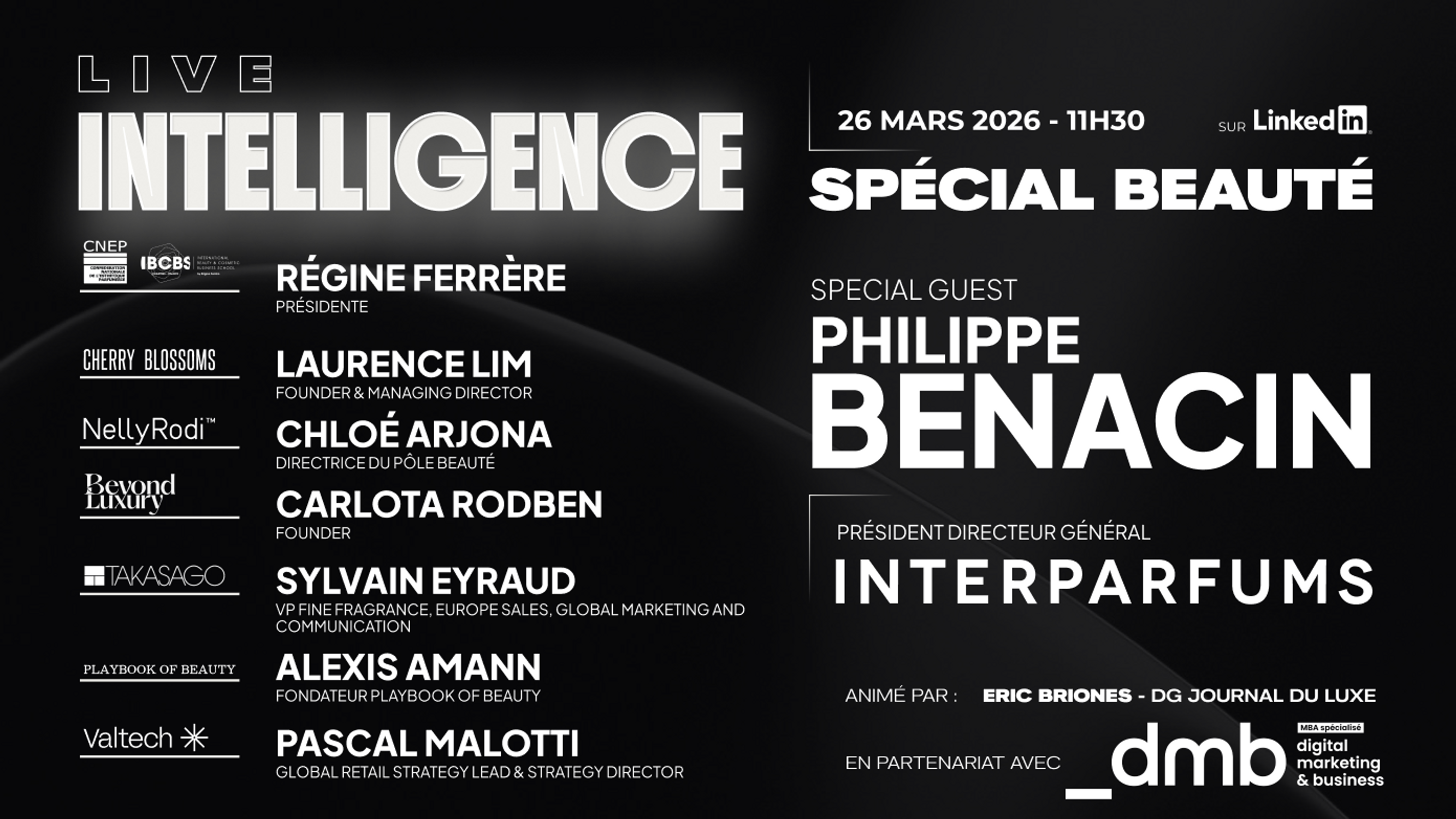 Pour éclairer ces enjeux, le Live Intelligence réunira plusieurs experts et acteurs majeurs du secteur, qui façonnent déjà les nouvelles dynamiques de la beauté.