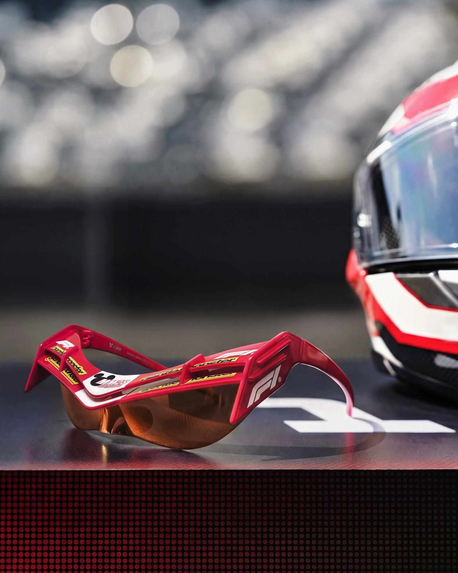 La collection eyewear de huit pièces réinterprétait des éléments structurels des voitures de course, notamment des formes inspirées des ailes et des codes aérodynamiques, à travers le langage design expérimental de Gentle Monster et la dimension ludique issue de Disney.