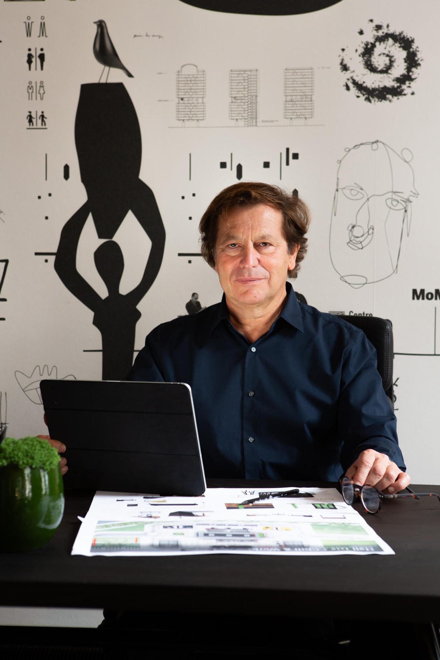 Designer des lieux de vie contemporains, il pense tout à la fois les boutiques, les hôtels, les bureaux, les gares, les centres commerciaux ou les marchés, avec la même attention portée aux gestes, aux parcours, aux usages. Car pour lui, tous les lieux sont liés : on travaille comme on vit, on consomme comme on voyage, on attend comme on habite. C’est cette transversalité qui guide ses créations, entre fonction et émotion, entre ancrage local et désir de mouvement.