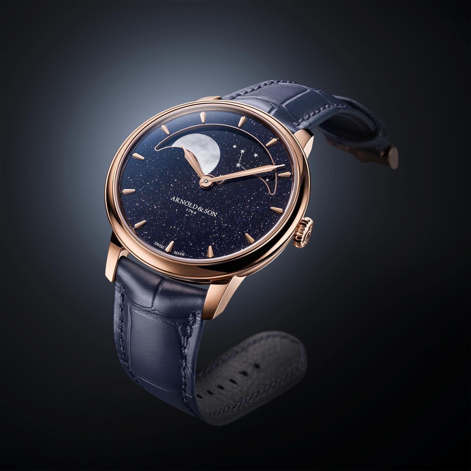 Arnold & Son revendique des phases de lune « astronomiques » et fait basculer, avec les collections Luna Magna et Perpetual Moon, la complication du côté de l’artisanat : marbre, nacre, météorite, verre aventurine…